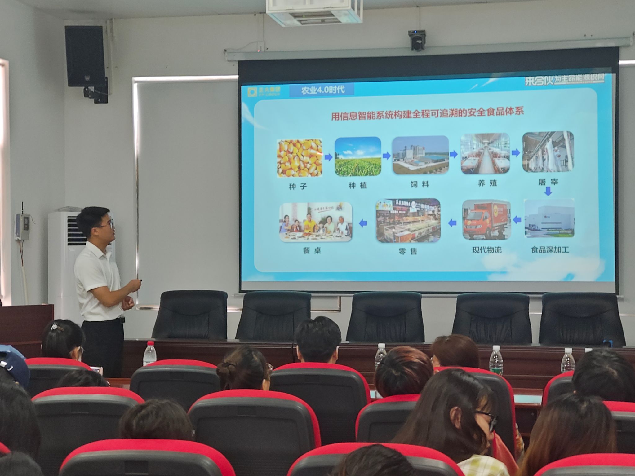 正大饲料(衡阳)有限公司喻总和聚味宝盆集团袁总分别进行了企业宣讲,介绍了公司文化、产品、荣誉及人才培养策略,并提供了实习岗位信息及待遇,为学生的职业发展提供了指导。