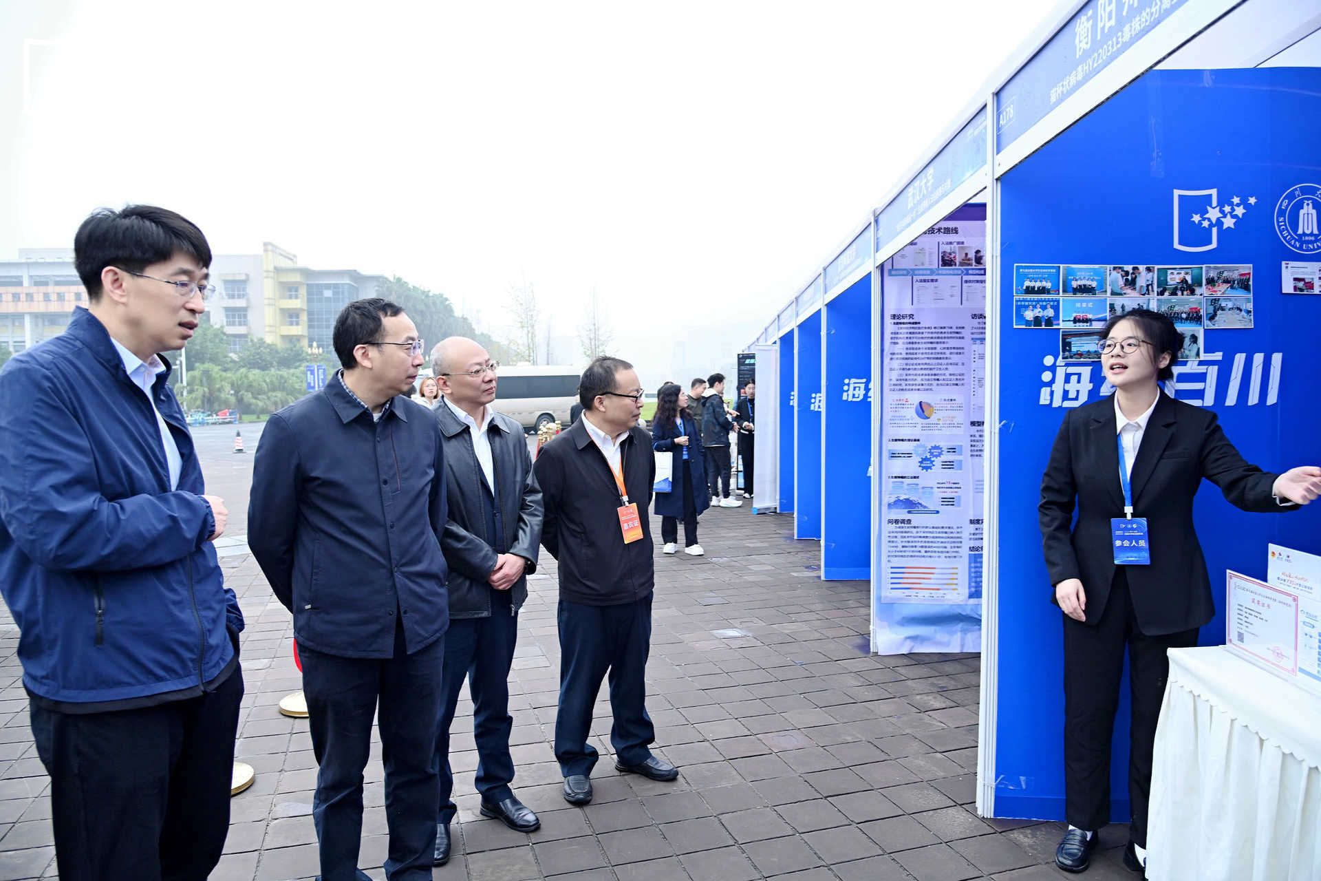 教育部高等教育司一级调研员侯永峰、四川省教育厅一级巡视员戴作安、四川大学副校长游劲松等领导现场考察本项目,我校唐艺彤同学作项目解说。