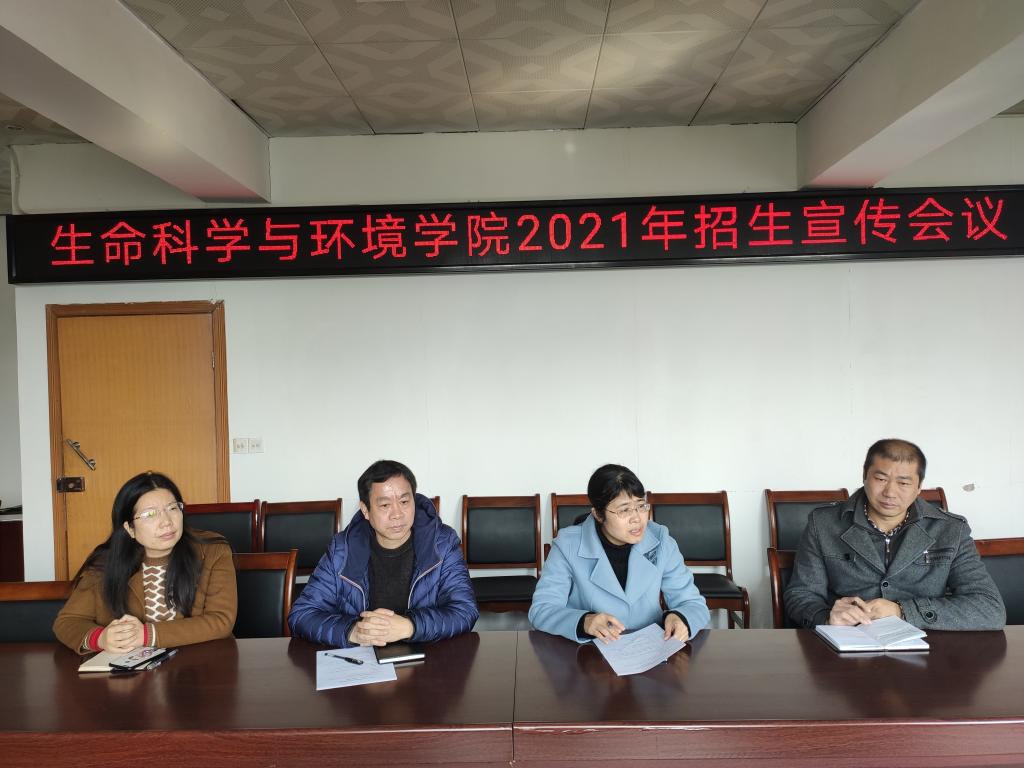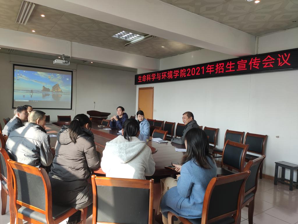2021年是采用“3+1+2”模式的新高考元年,也是实行“学院专业组”招生的开局之年。为进一步统一思想,明确分工,降实责任,形成合力,顺利推进招生宣传工作。1月15日,生环学院在千禧楼六楼会议室召开招生宣传工作专题会议。学院党政领导、现任及上任专业负责人、实验室主任以及辅导员参加会议。会议由曹丽敏院长主持。