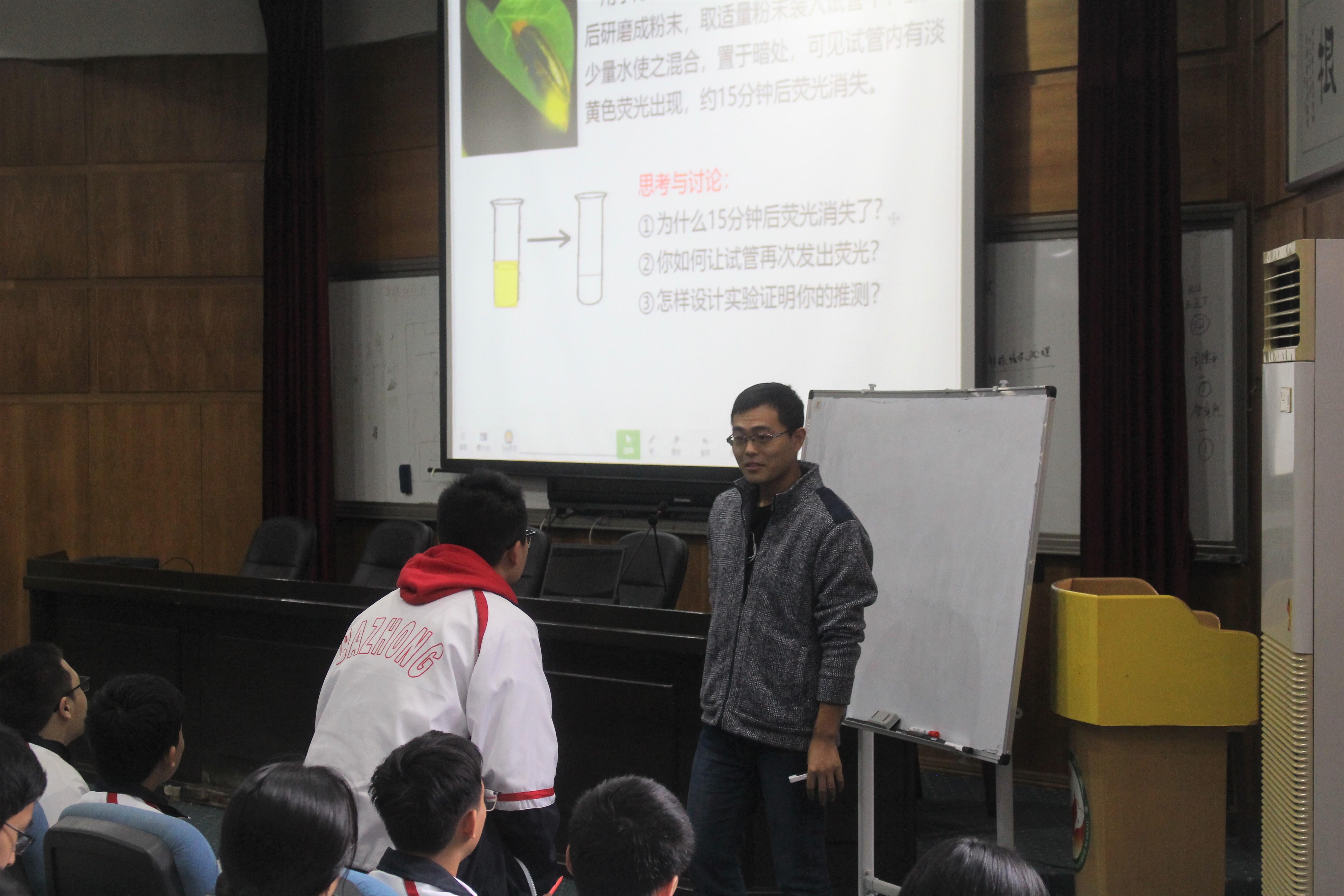 21日,这一天的目的地是船山实验中学。在这里,该校一位资深生物教师为我们展示了一堂活泼的生物课,将实验探究和课堂讲授完美融为一体,获得了大家的一致好评。一位正在实习的16级生物科学专业的王辉香学姐也为我们展示了一堂生物课。课后,王辉香学姐主动为17级学弟学妹答疑解惑,分享经验。之后,生环学院第一届毕业生、现任船山实验中学生物教师的钟珍学姐对该校作了简单介绍,并表示热烈欢迎买球官网学生到该校实习。