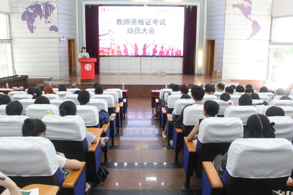 为切实做好师范生教师资格证迎考工作,督促同学们尽早进入教师资格证考试的备考状态,6月19日下午三点,买球官网特此召开2019年教师资格证动员大会,大会在西校区模拟法庭准时举行。党支部书记刘艳波,院长曹丽敏,副院长易诚,黄慧珍、刘健晖、滕涛、唐兴等老师出席本次会议并做动员指导。此外,还邀请到了新航道教育衡阳校区负责人谢利华先生,新航道教育教师资格证高级讲师刘捷进行了相应讲解。17级全体师范专业学生到场聆听。