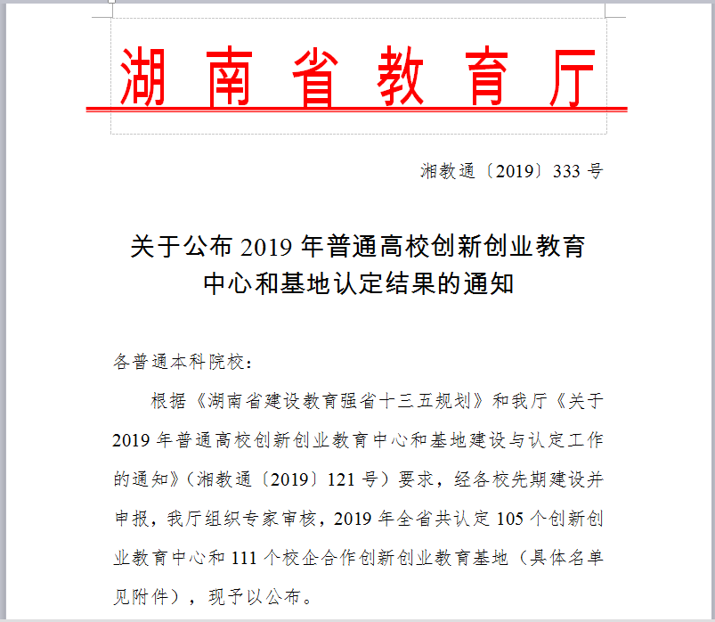 喜讯:经我校积极组织申报,湖南省教育厅组织专家认真评审,2019年我校新增3个省级创新创业教育中心和3个省级校企合作创新创业教育基地:其中曹丽敏院长负责的《买球官方网站生物技术校企合作创新创业教育基地》被湖南省教育厅认定为省级校企合作创新创业教育基地,这是买球官网省级平台项目的首次突破,也祝愿买球官网师生勠力同心,学院事业蒸蒸日上!