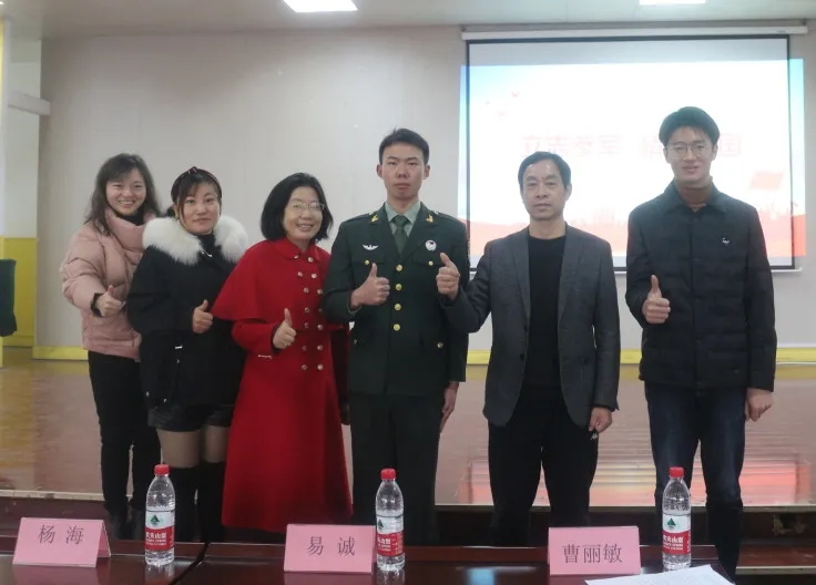 会议第二项,文学院退役复学学生王洪杰宣讲优秀入伍事迹。王洪杰提出,当兵是一种家庭情怀,从古至今,多少热血男儿征战沙场保家卫国,穿上军装,扛起钢枪,去做一件轰轰烈烈有意义的大事?天下兴亡,匹夫有责。中国是我之中国,更是我辈青年之中国,此时不从军更待何时?