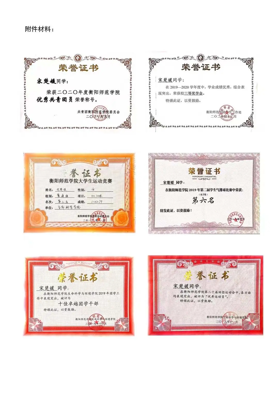 四人所获证书: