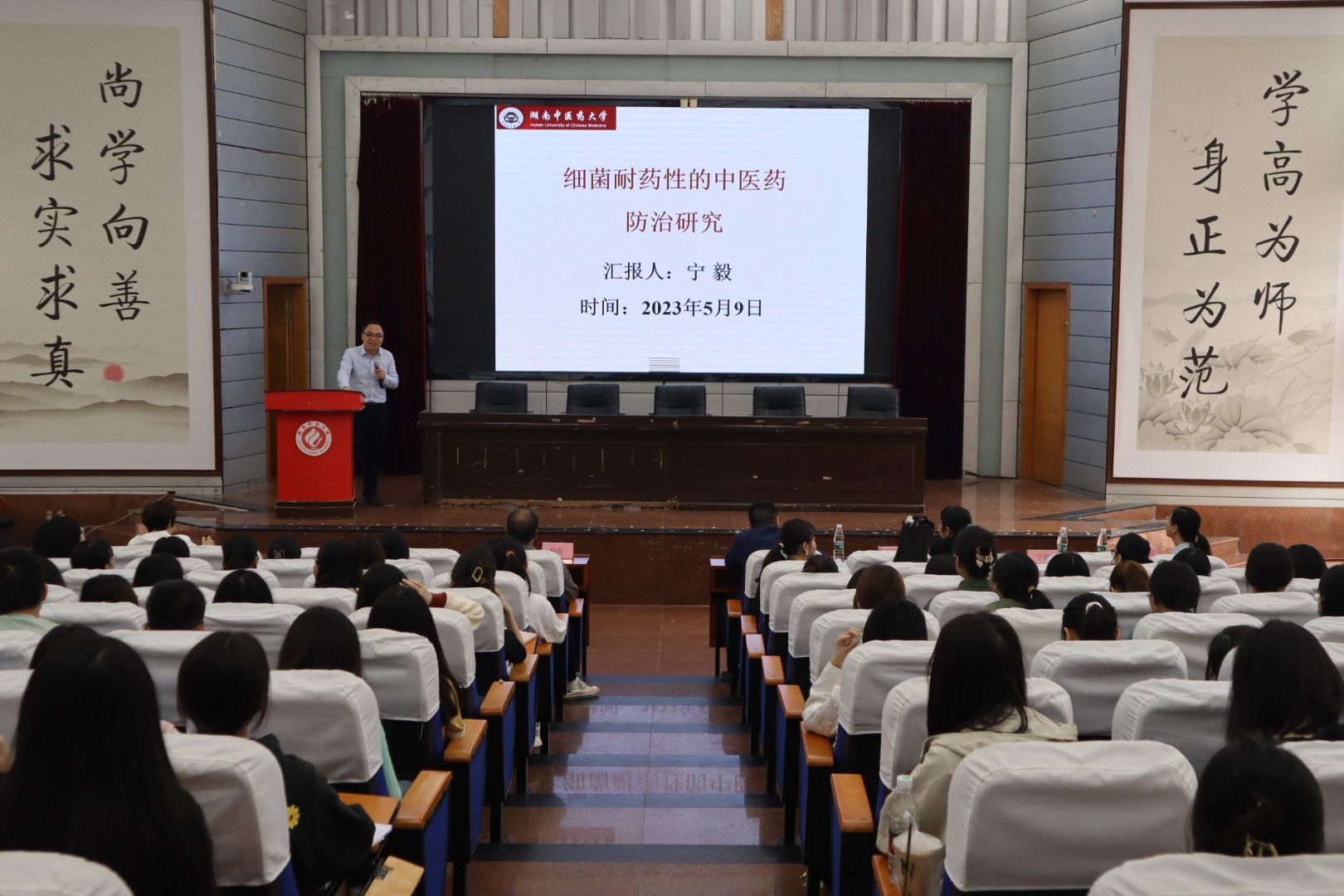 5月9日上午10点,湖南省中医药大学宁毅副教授在西校区模拟法庭为买球官网师生做了一场题为《细菌耐药性的中医药防治研究》的精彩报告。买球官方网站学院党总支书记曹丽敏教授、院长易诚教授、副院长杨海、陈晓华及买球官网师生共同聆听了本次报告。