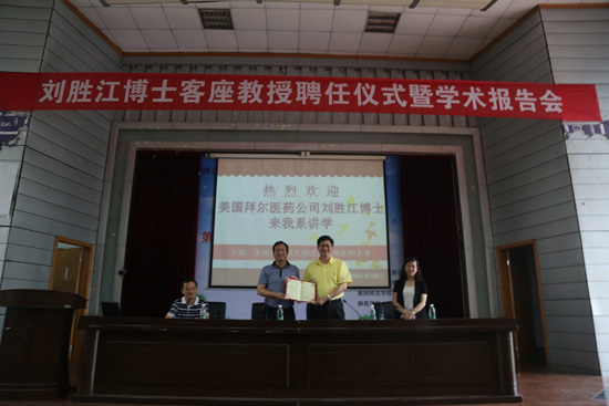刘胜江,博士,湖南邵东人,1989年12月赴美留学,现在拜耳医药保健有限公司(Bayer HealthCare Pharmaceuticals Inc.)工作,任全球生物药品研发部病原安全室主任、首席科学家。