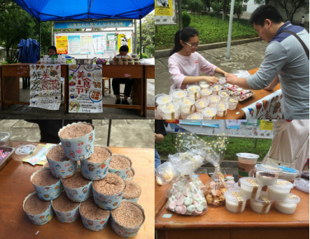 2018年5月12-13日,生命科学与环境学院“爱尚美食,幸福每时每刻”暨第五届校园美食文化节在买球官方网站西校区成功举行。此次活动中,买球官网食品俱乐部同学在食品专业老师的指导下,将专业知识与实习实践相结合,精心准备了多种美食,如蛋糕、奶茶、发酵糙米乳、砵仔糕、牛轧糖、曲奇饼干等。其中,发酵糙米乳是科技创新项目研发成果,牛轧糖是专业实习后改进工艺研发的新产品,曲奇饼干是工艺实验课程和科研训练研发的成果。活动现场,纯手工制作的美食格外诱人,吸引了大批“吃货”驻足品尝咨询。