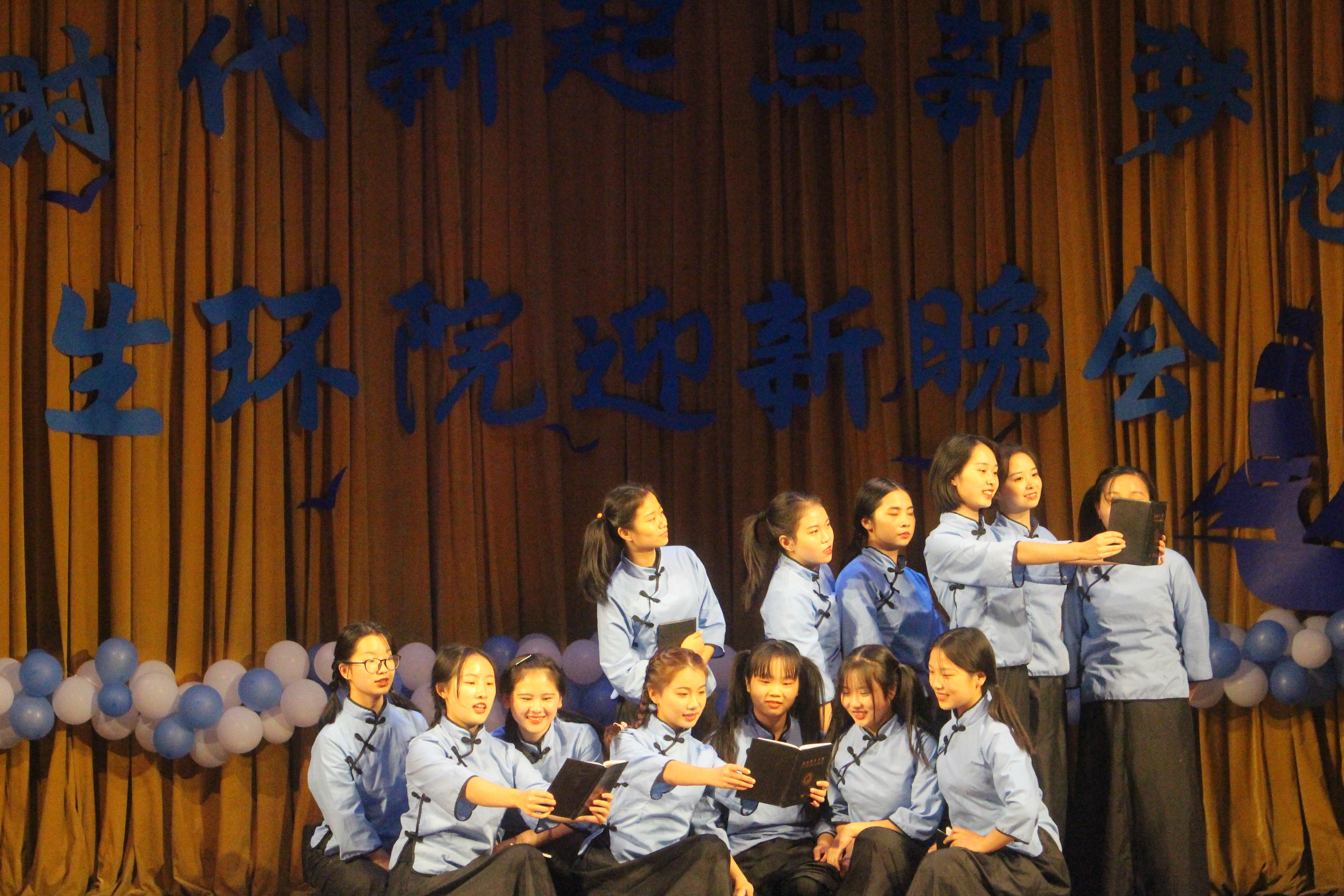 中间一辑祝福视频表现出生环学院师生之间、生生之间那一份深切感情。而后,舞者身着复古绿衣手执扇起舞,一支古典舞《醉春风》展示着东方神韵。rap说唱《说不清楚》、院啦啦队舞蹈、小品《好日子》等节目交错呈现,整场晚会精彩不断,高潮迭起。