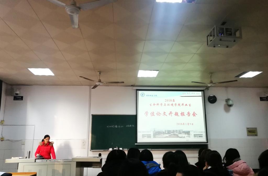 2018年1月9日上午,生命科学与环境学院在外语楼102、509、703,综合楼602成功举办了2014级毕业论文开题报告会。曹丽敏院长、易诚副院长、杨海副院长及相关专业老师参加了报告会,2014级生物科学专业、食品科学与工程专业和环境工程专业全体学生到场参会。