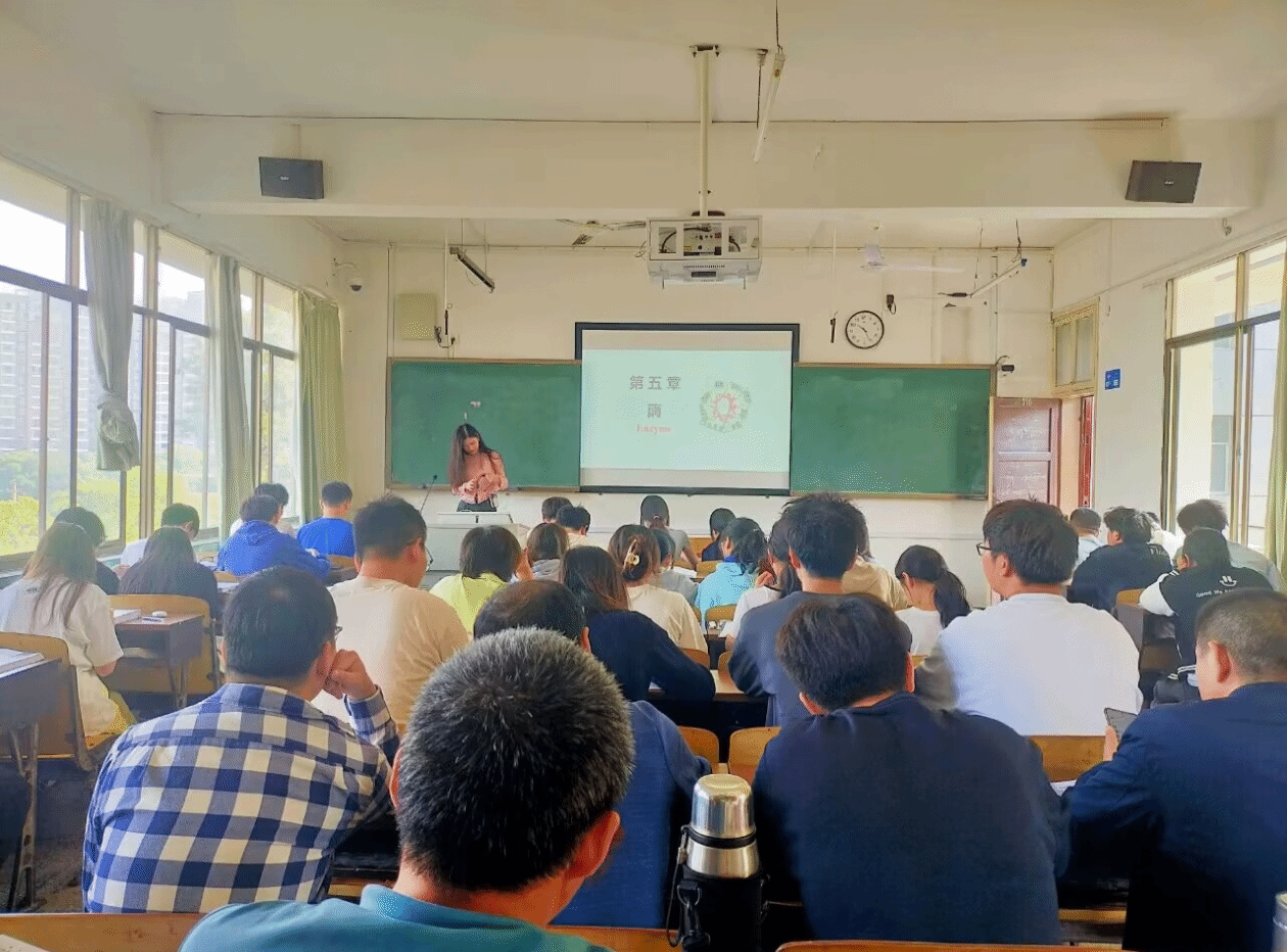 朱涵予老师讲授的是“食品生物化学”课程。他利用信息化技术对之前讲授的相关知识进行了总结和梳理,构建知识树和系统树,然后采用动画,引导同学们进入“酶”的世界,围绕酶的概念、结构与功能、酶的分类、催化机制以及应用等内容,为同学们详细讲解了酶的相关知识,并实时提问。全程课堂气氛活跃,同学们积极互动,热情回应,对朱老师的教学方式给与了高度评价。