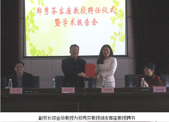 聘任仪式上,曹院长对郑秀芬教授的基本情况及其学术业绩进行了介绍,郑金华副校长代表学校对郑秀芬教授的来访表示了诚挚的欢迎,并为其颁发了买球官方网站客座教授聘书。
