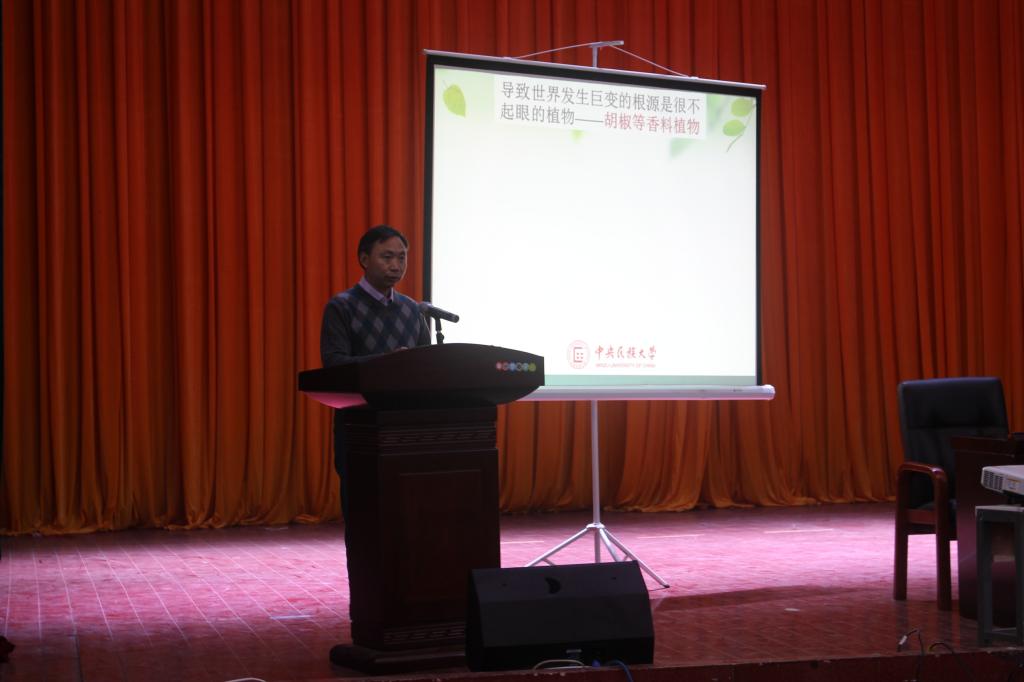 本次报告会由院长曹丽敏主持。曹院长首先为大家介绍了龙春林教授的基本经历、研究成果以及获奖情况,龙教授丰硕的科研成果令人由衷敬佩。接着,龙教授由《大国崛起》、《改变历史进程的50种植物》、《改变世界的植物》三本书引出本次报告的主题——“植物改变世界”。随后,龙教授举出胡椒、甘蔗和茶叶等植物在历史上引发人类战争、新大陆的发现、人类的迁徙、人口结构的改变等实例生动地论证了植物改变世界。然后,他又进一步从粮食、人类健康、世界能源、生态环境以及可持续发展等方面有理有据地说明植物正在改变世界,并将继续改变世界。同时,龙教授还结合亲身科研经历——植物在食品、药品以及化妆品等方面的应用让“植物改变世界”这一主题更加深入在座师生们的内心。龙教授风趣的语言、生动的讲述、广博的学识赢得同学们的连连赞叹。最后,同学们就自己关心的问题踊跃请教了龙教授。