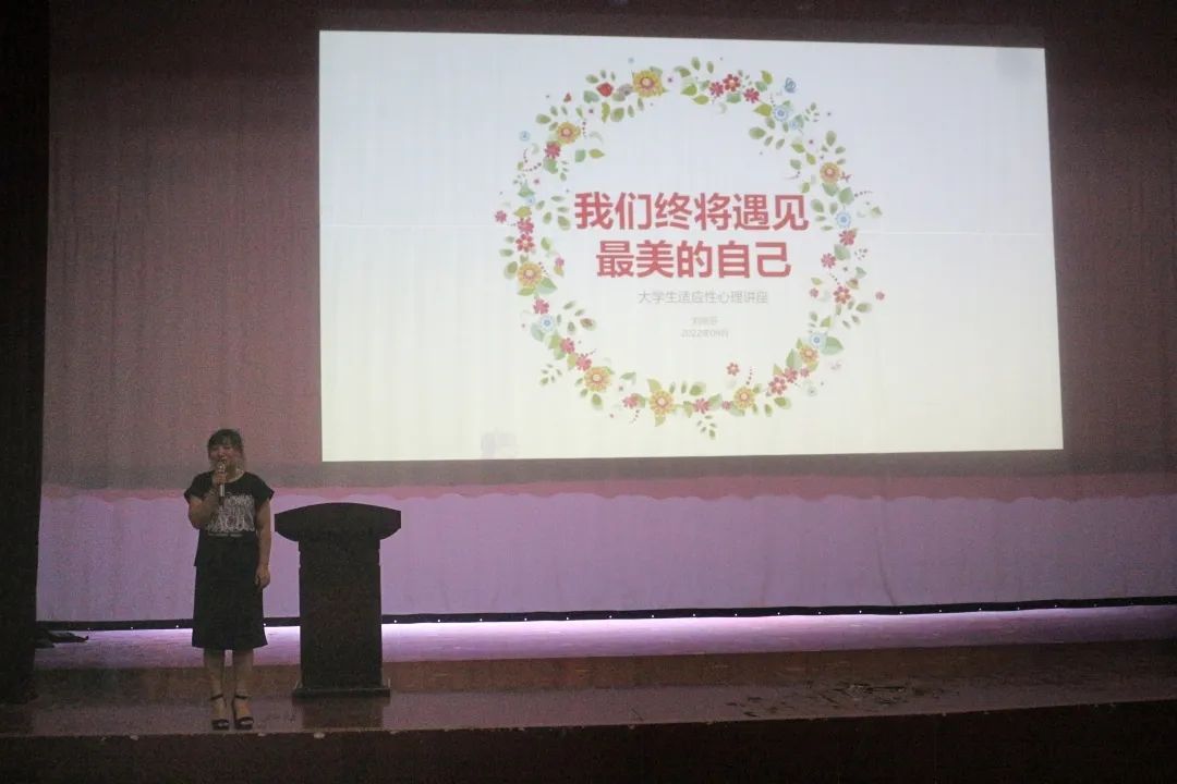 为了让新生在心理上适应大学的各种变化,帮助新生顺利度过大学适应期,9月30日晚7:30,买球官网在西校区排演厅举办了题为“遇见最美的自己”的心理健康教育讲座,此次讲座主讲人为国家二级心理咨询师,学院心理专干刘树芬老师,讲座对象为学院22级全体新生。
