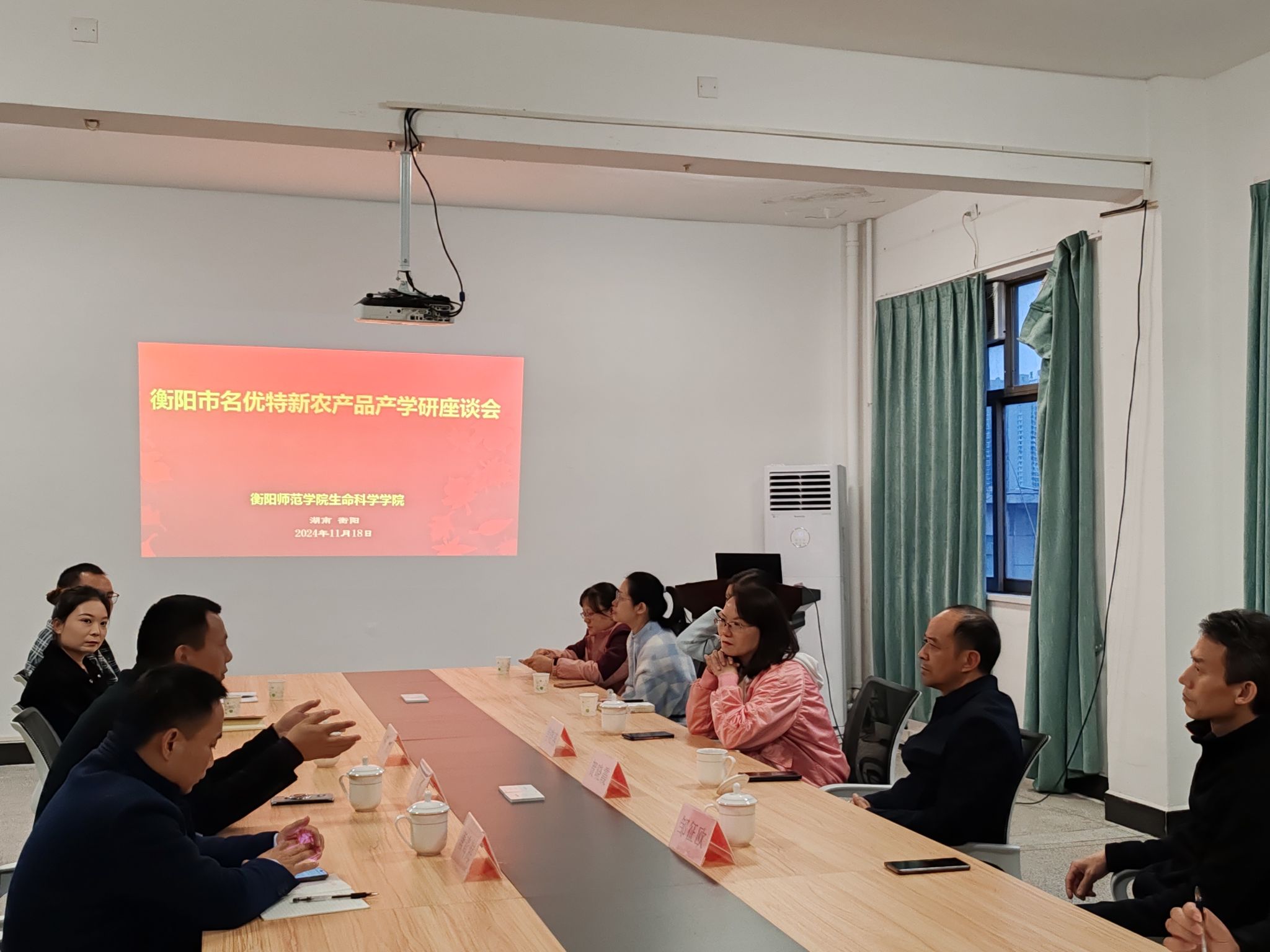 易诚院长做欢迎词,强调买球官网与衡阳市农业农村局的密切关系,希望在未来能有更多的合作机会。随后易院长作了题目为“贯彻学生中心理念,产学研用培养创新应用型生科人才”的主题报告。会上,农业农村局领导代表分别发言,表达了对买球官方网站取得成绩的肯定,也会极力支持学院牵头进行名优特新农产品开发,希望学院借此契机将产学研结合起来助力衡阳经济发展。杨海副院长主持了买球官网教师的讨论,他从科研方向和水平两个方面着重介绍了买球官网教师的科研力量。部分教师代表就产学研发展方向作了发言,全体与会人员积极讨论衡阳市名优特新农产品的规划。