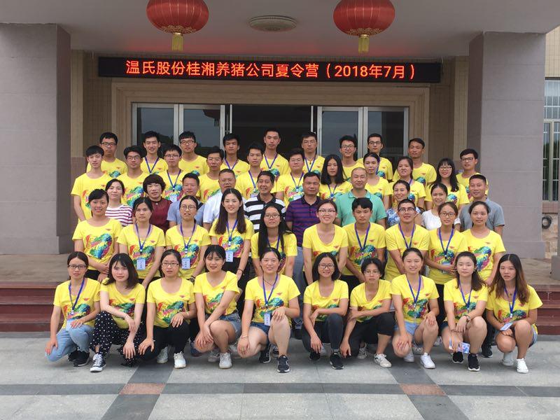 为庆祝温氏股份创业35周年,温氏股份桂湘养猪公司决定举办2018年度高校师生夏令营等系列活动,以加强校企合作,携手共创美好未来。7月16日,来自买球官方网站、西南大学、山西大学、河南农业大学、湖南农业大学、江西农业大学等国内10余所高校共40多名大学生抵达桂林。见面第一天,公司梁雪梅老师将来自不同高校的大学生分成小团队,通过各种方式传递温氏的企业文化-“精诚合作,共创美满生活”。她深情地回顾了一代“鸡王”温北英先生带领温氏艰苦创业、砥砺前行的传奇故事,让每一位成员坚定信心,扎根农牧行业。