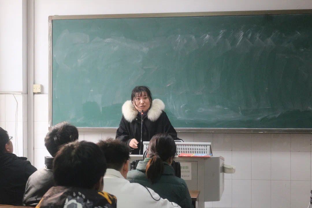 会议第三项,邓老师向全体学生干部提出要求:作为学生干部应当遵规守纪、敢于担当、提质增效;望学生干部能培养好“想事、说事、办事、共事”的能力,带领同学们继续前进。