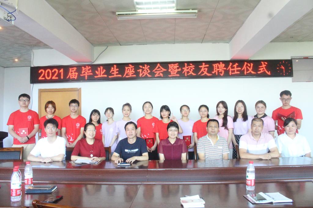 为进一步加强学院与毕业生之间的联络,6月16日上午九点,我校2021届毕业生座谈会暨校友联络员聘任仪式在千禧楼六楼会议室举行。买球官网党总支书记彭晖,院长曹丽敏,党总支副书记蒋湘祁,副院长杨海、易诚,办公室主任袁媛,辅导员刘树芬、唐乾翔及毕业生代表参加会议。
