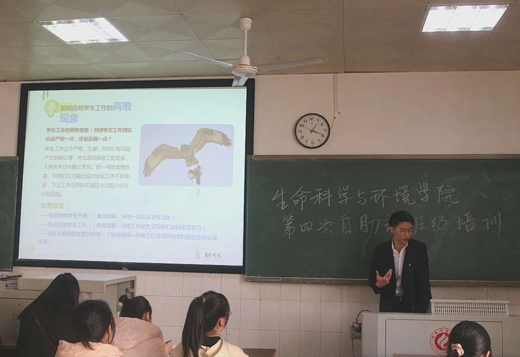 为提高学生干部的综合素质,使其能更好地服务学院、服务同学,买球官网于2021年11月23日中午12:50,在外语楼301召开生命科学与环境学院自助式班级学生干部第四次培训讲座,唐乾翔老师为买球官网学生干部进行培训。参加此次培训的有全体学生会成员和各班班委。