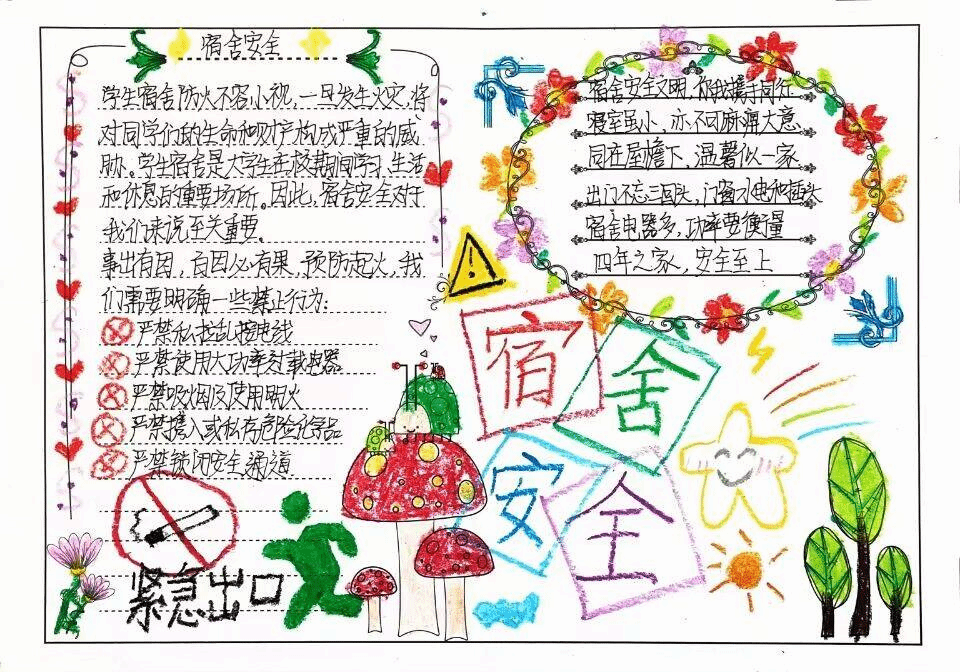 随着宿舍安全手抄报创意比赛的落幕,我们看到了许多创意新颖,富有想象力的作品,在这之中,B02-208寝室的同学凭借着优秀的文字与画面,获得了校园优胜奖,可喜可贺。这些优秀的作品充分说明我们生科院同学们的思想活跃,极具创造力。与此同时,在微视频比赛上我们也取得了优秀的表现,同学拍摄的微视频也富有趣味,饱含深意。