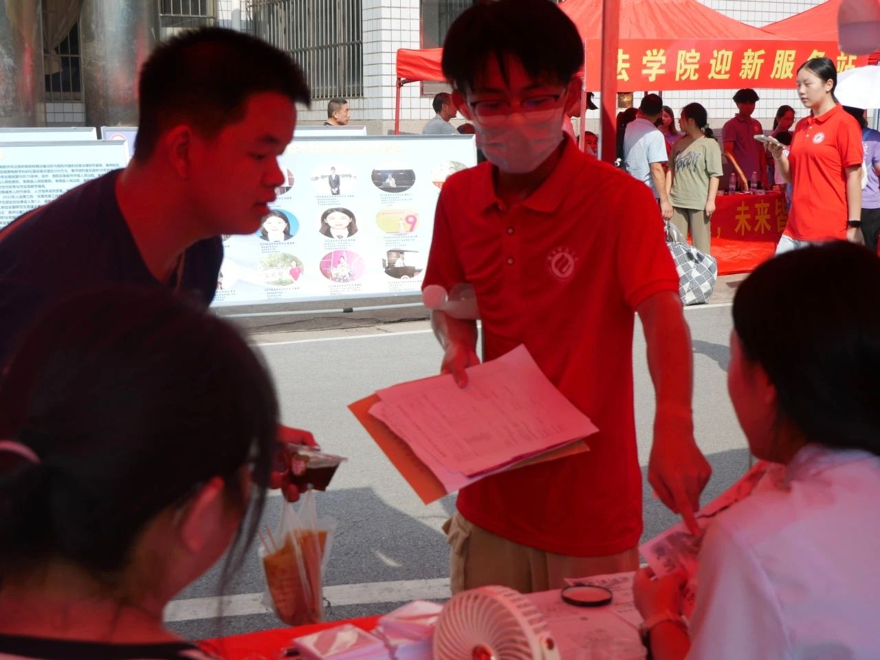 新生报到当天,学生党员们在迎新点设立"党员服务台",他们主动接过行李,为学生及家长送上买球官网食品专业学生自制的酸梅汤和蛋挞,耐心解答新生及家长关于报到流程、宿舍分配等问题。他们用这份贴心的"清凉与甜意",传递着学院的怀与温暖。