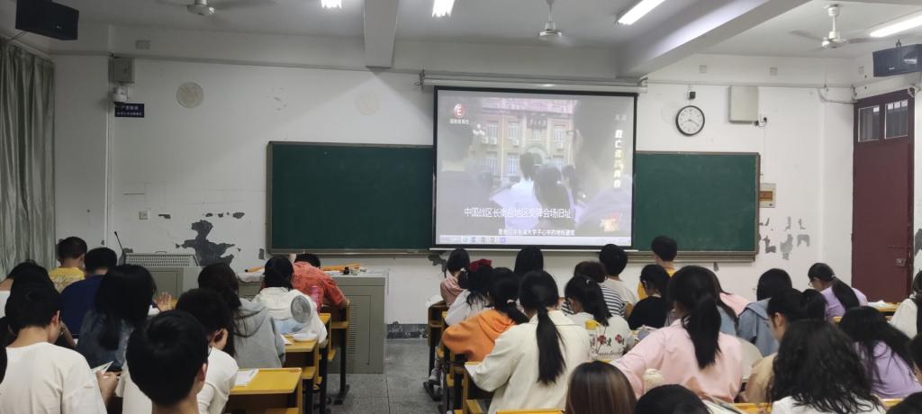 《为时代育新人》第一集《青春之歌》5月4日晚8点在湖南教育电视台播出,当晚7点45,学院组织各班级同学及全体学生党员观看节目首播,学习榜样精神,感受榜样力量,营造向榜样学习,向榜样看齐的浓厚氛围。