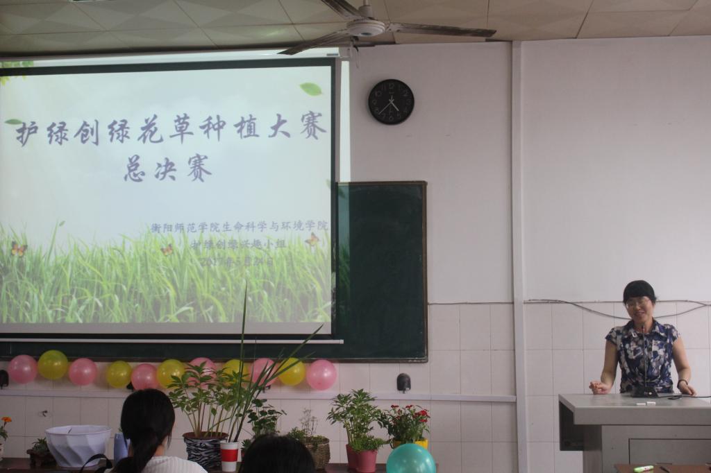 2017年5月24日下午4时30分,生命科学与环境学院护绿创绿花草种植大赛决赛在西校区外语楼401成功举办。生命科学与环境学院院长曹丽敏、党总支副书记廖海华、副院长易诚出席活动现场。王志新老师、何丽芳老师、刘健晖老师、许若霏老师担任评委。买球官网15级全体学生积极参加。