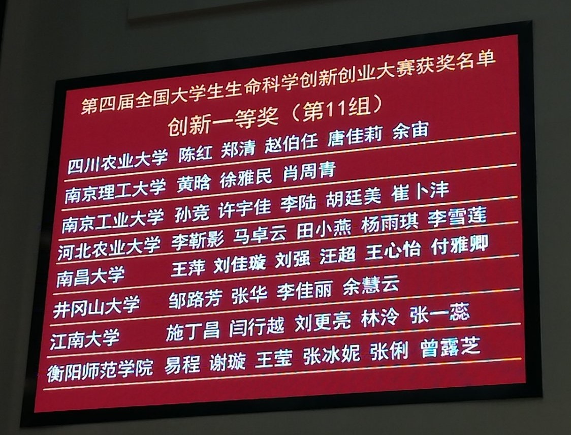“全国大学生生命科学创新创业大赛”是我国生命科学学科领域级别最高、参赛范围最广的全国性大学生学科竞赛,由教育部高等学校生物科学类专业教学指导委员会、教育部高等学校食品科学与工程类类专业教学指导委员会、教育部高等学校国家级实验教学示范中心联席会、《高校生物学教学研究》杂志编辑部联合主办。
